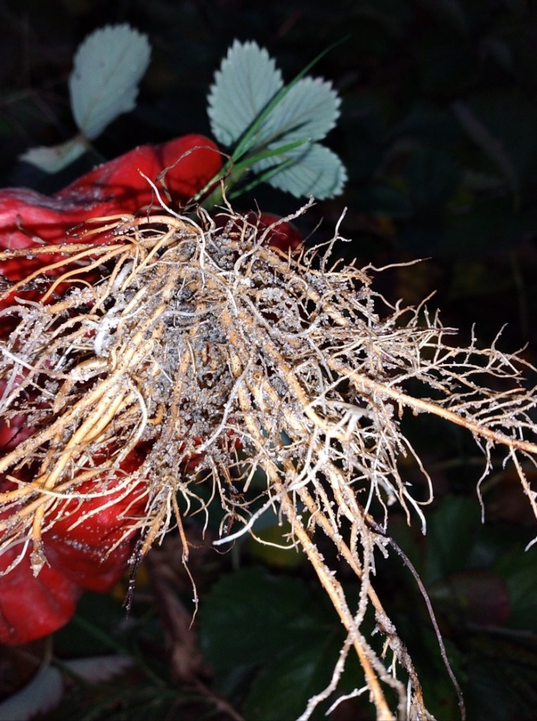 Korijenje je doslovce 3 do 4 puta krupnije od tipičnih sadnica koje se uzgajaju u posudicama. SVE SVOJE kupine/voćke uzgajam isključivo na otvorenom jer se samo tako dobivaju ogromne i zdrave sadnice.